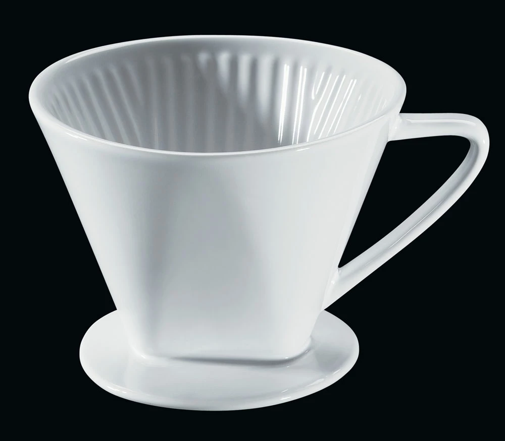 Kaffeefilter Größe 4, Ø 14 cm, Höhe 11,5 cm, feuerfestes Hartporzellan, weiß, bei ca. 1300°C gebrannt